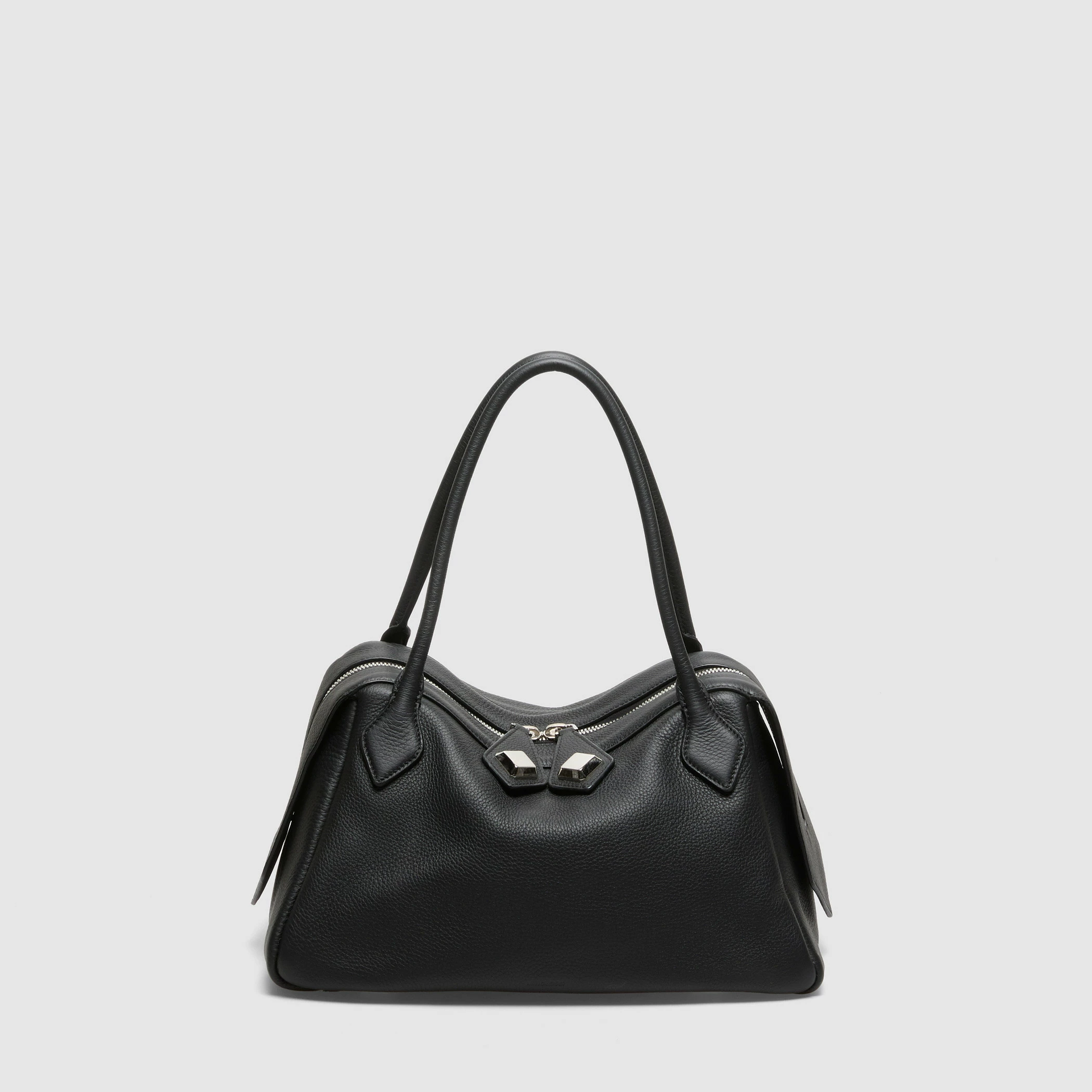 Borsa media con maniglie in vitello morbido granato.