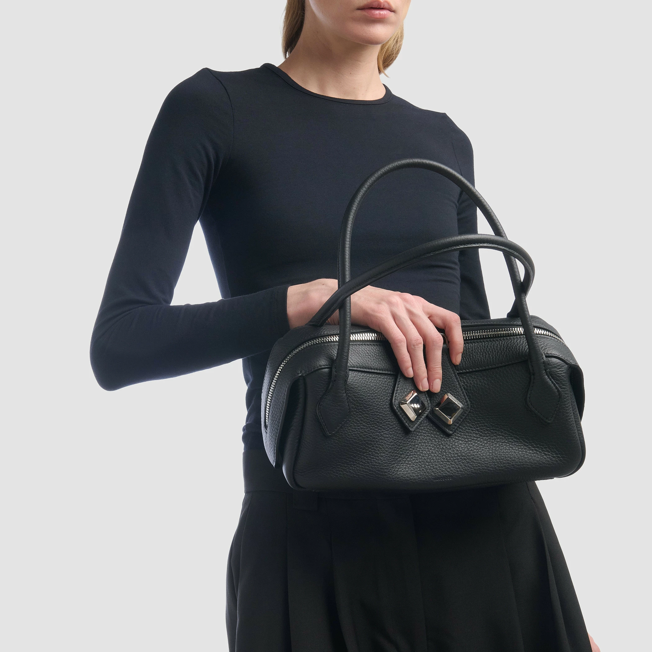 Borsa media con maniglie in vitello morbido granato.