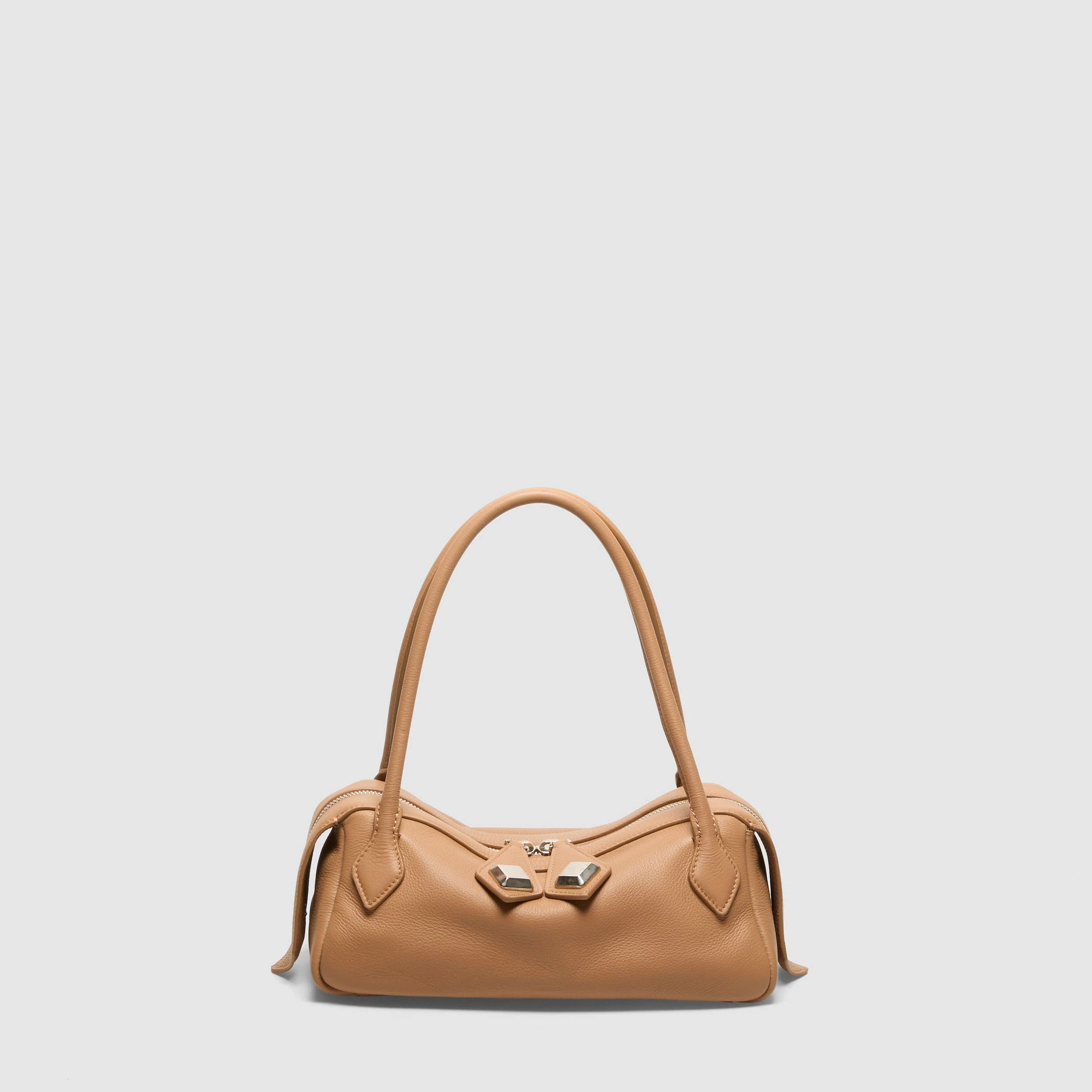 Borsa media con maniglie in vitello morbido granato..