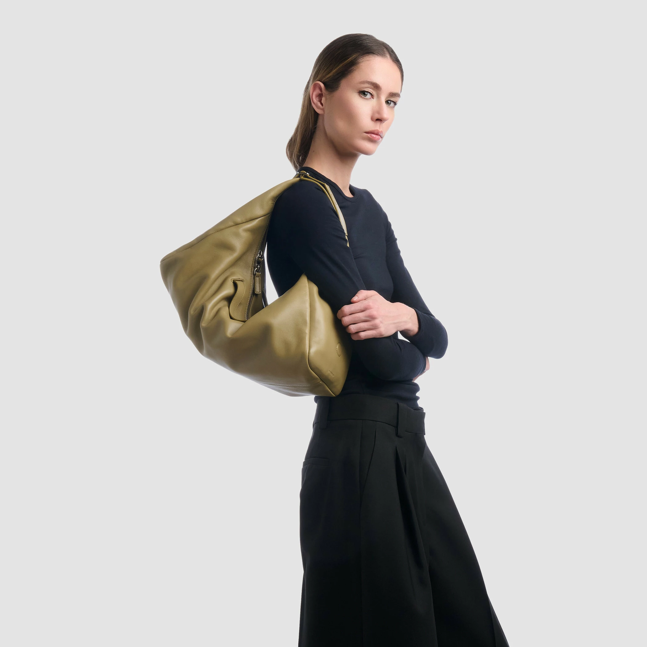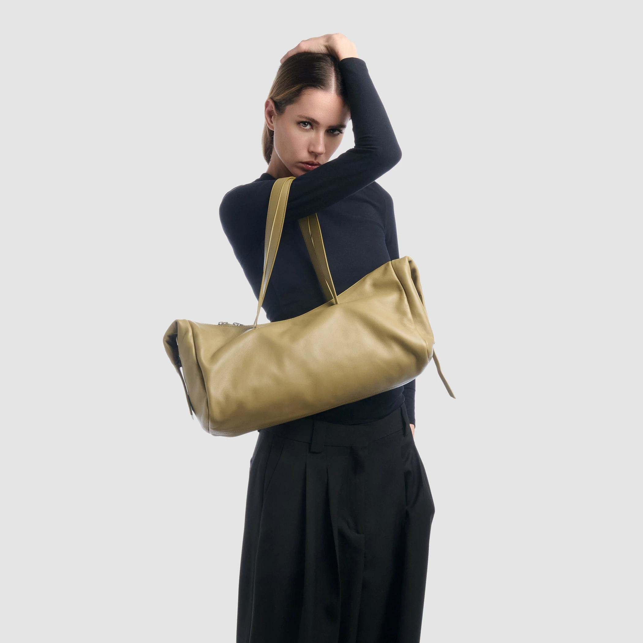 Borsa grande a spalla con maniglie a doppia vestibilità, in morbida nappa.